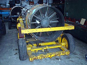 Vulcan B1 XA903 - Olympus 593 TrialsThe Olympus 593, designed for use in Concorde was a twin spool augmented turbojet. Developed by BED and SNECMA, the Olympus 593 was civil variant derived from the Olympus 320 designed for the BAC TSR2. BED was responsible for the engine as a gas generator, and SNECMA had authority for the entire exhaust system. Development potential was to be about 40,000lb thrust. The engine comprised of a seven stage LP compressor, seven stage HP compressor, cannular combustor with eight flame tubes, single stage HP and LP turbines, simple single-gutter afterburner, cascade-type thrust reverser, multi-lobe retractable noise suppressor, multi-flap independently variable primary and secondary nozzles. Mass flow was 450lb/sec; pressure ratio 9.3:1 length (flange to flange) 148.4in; (intake to exhaust nozzle) approx 280in; inlet diameter 47.85in; weight 5,814lb. On November 5, 1965, three weeks ahead of the contractual deadline, the Olympus 593B made its first bench run in Bristol. Back in France, SNECMA started initial tests of the variable nozzles in June 1966 at Melun-Villaroche. Three months later, flight tests started on XA903. The first version of the engine soon delivered thrust of 34,650 lb. The results of initial afterburner tests also met expectations, boosting thrust to 37,180 lb. This performance met the requirements of the aircraft manufacturers. XA903 is being restored to as it was when testing the Olympus 593 engine, which was installed as one half of a Concorde nacelle. This was attached underneath the bomb-bay space. The weight of the Olympus 593 engine and the ancillary equipment that came with it meant that every landing was above the maximum landing weight specified in the pilot notes. The max landing weight was specified as 109,000 lb, but XA903s landing weight was always between 125 130,000 lb. Because of the under-slung engine, every landing had to be made in a fairly flat attitude to prevent the engine nacelle from scraping the runway. It therefore wasnt possible to raise the nose and use the large wing area for aerodynamic braking. Landings were made at a threshold speed of around 130 knots and the braking parachute was streamed on every landing. The nosewheel leg was from a Mk2 Vulcan. This was fitted because it was shorter than the Mk1 leg and thus avoided the 593B tail cone scraping the runway. The bomb bay space was used for addition fuel tanks that were used to supply the 593 engine, and for a water tank that was used as part of the engine tests. The bomb bay held 400 gallons of fuel, stored in two tanks. These could be refilled from the aircrafts fuel tanks; teed off from the port side of the aircrafts cross-feed gallery. This gave 903 a fuel capacity of its normal 9382 gallons, plus 400 gallons in the bomb bay tanks, giving a total of 9782 gallons. The 593 with reheat used 5000 gallons per hour. The maximum fuel flow from the aircraft into the two tanks was 3500 gallons/hr. This meant that there was only sufficient fuel to run the 593 with reheat for about 15 minutes. (The RB199 had a maximum demand of 6000 gall/hr, allowing only 10 mins duration). Fuel could not be pumped back into the aircrafts fuel tanks from the bomb bay tanks. One of the key functions of the test flights was to gather data from the engine for later analysis. As a result, a vast amount of sensors were fitted to the engine to allow the signals to be monitored and recorded for later analysis. In order to get the signals back into the cockpit and cabin, which was a pressurised section, an external wiring loom was fitted down the port side of the aircraft, allowing the signals to enter the radome for processing and presentation to the cabin area through the front pressure bulkhead. In order to reduce the number of wires returning to the cabin, many of the pressure signals were multiplexed onto a single transducer, thus requiring only two wires for those signals. This was performed by devices called scanivalves (scanning valves), which allowed the measurement of 48 separate pressure measurements onto a single transducer. Signal processing comprised of signal conditioning equipment in the bomb bay and a digital data recorder DDR600 which was located in the radome. The radome was modified to take the "T" shaped digital data recorder, weighing 600lb, which converted the analogue electrical signals from transducers (instrumentation) dotted all over the Olympus 593B engine and the aircraft, and recorded them in selected bursts onto a 1/2 inch magnetic tape in the cockpit. Because there was a large array of transducers measuring temperatures, pressures, positions etc, the DDR provided an analogue to digital conversion of the signals, then enabled spot measurements to be read in a switchable mode, using the scanivalves. So instead of continuous measurements, the DDR read each parameter in turn for a brief period and sent the digital signal to the tape - all 600 of them. The DDR600 tape recorder was a reel-to-reel recorder using 3M 1/2 inch by 1800 ft magnetic tape, located close to the rear desk, but behind them. Also, in roughly the same position was located a separate 14 track 1 inch magnetic tape BS768 reel-to-reel recorder for measuring continuous signals for noise, vibration, engine speeds and rotating stall cell, using 3M 1 inch by 1800 ft magnetic tape. The recorders were large and highly visible and were operated with their lids off so that one of the rear desk crew could keep an eye on them, in case they stopped working or jammed. A great deal of reliance was being placed upon these recorders, because the bulk of the testing results were being channelled into them. For example, the DDR600 was recording the "life history" every minute of six scanivalve devices, each with forty-eight ports of pressure, that's about 288 separate parameters from the Olympus 593B engine. Of course, besides this were scores of temperature measurements, mostly from Nickel-Chrome/Nickel-Aluminium